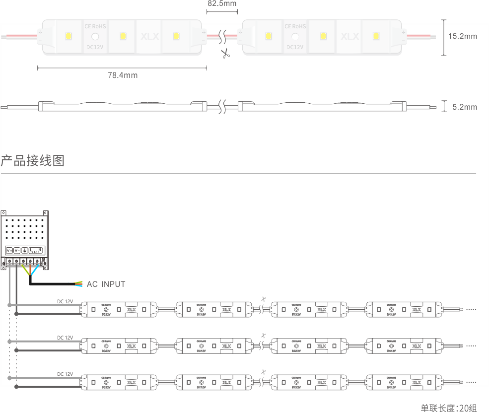 接纳SMD 2835高亮度光源,一组3灯